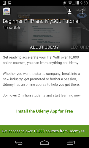 Install the "Learn PHP & MySQL by Udemy" app now and join over 4 million students who are already learning on Udemy.