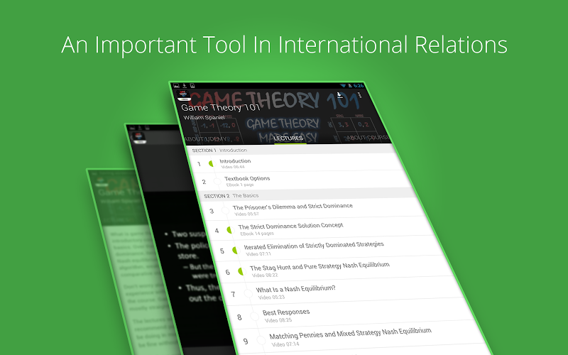 - Watch courses on the go: video lectures, audio lectures, presentations, articles and anything inside your course.
