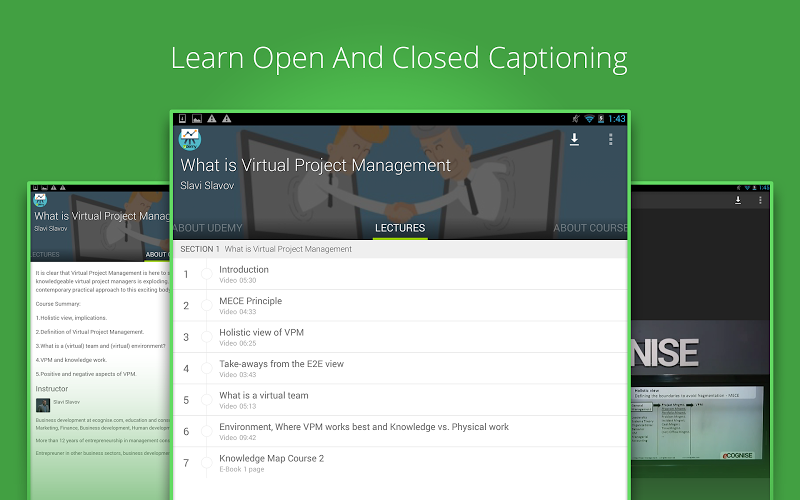 • Watch courses in offline: Save courses for offline viewing so you can watch them while you're on a plane or subway!