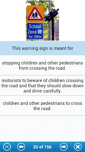 This study method is convenient and interactive and gives immediate feedback as your knowledge and understanding of Singaporean road rules and regulations as well as traffic signs and signals. In addition code of conduct and car parts and controls are also covered.