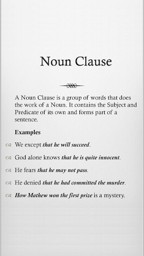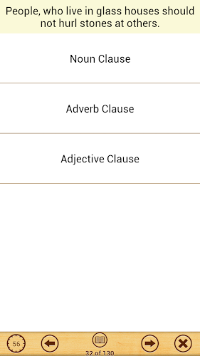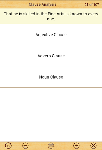 Grammar Express: Clause Analysis is the complete course in mastering the art of breaking up simple or complex or compound sentences into their different components for better understanding. It contains over 8 pages of lessons explaining various rules for analyzing different kinds of clauses with several examples. You can learn the grammar rules, study the examples and test their understanding by taking quiz. At the end of quiz the user is presented with test summery and explanation for each test question. Grammar Express can help you to improve your understanding of how to identify clause whether it is adjective clause or adverb clause or a noun clause. Custom timer setting can assist you to improve response times under exam time constraints. Research suggest that kids and adults learn most quickly when playing learning games with real-time error-feedback. Grammar Express provides learners with an opportunity to improve strategies for grammar success.