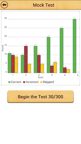 A summary of the practice test is presented at the end of each test. It shows you the time you took, the score, which questions you answered correctly and where you were wrong.