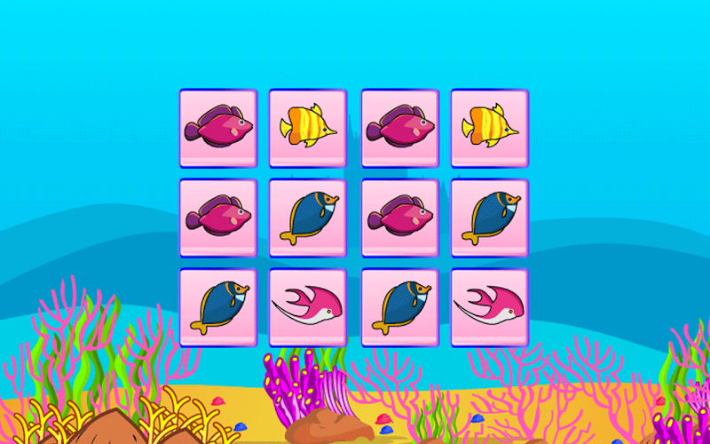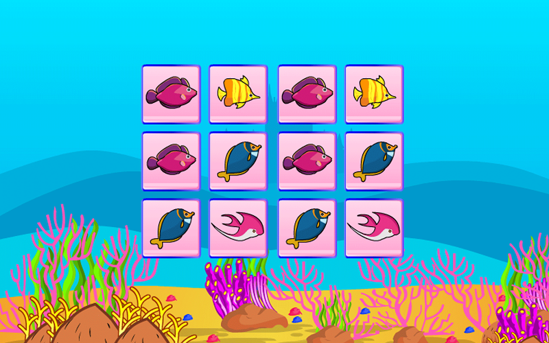Ryby vypadají tak krásně v oceánu, ale jediná věc je, že jsou všechny oddělené od svých párů. Může pomoci rybám připojit se k jejich páru v oceánu a být šťastní jako kdykoli předtím? Pak pokračujte v této aplikaci a udělejte ryby šťastní. Je vám poskytnuto spoustu barevných ryb a jejich pár je skrytý za obrovskými skořápkami. Musíte mít dobrou zapamatovací sílu pro přehrávání této aplikace a dobrého pozorovatele, protože v prvních několika sekundách se zobrazí všechny ryby, a pak se skořápky převrátí a budete muset najít pár a spojit je dohromady a udělat je, to vše musí být provedeno před časem. Takže pokračujte, proveďte své dovednosti, přehrajte aplikaci a dokončete každou úroveň, než dojde čas a přejděte na další úrovně a nechte si skvělou hru! A poté se převrátí a schovávají se za skořápky. Pokud jste dobře pozorovali, bude to pro vás snadný úkol dokončit všechny úrovně předtím, než dojde čas. Bavte se!Funkce: