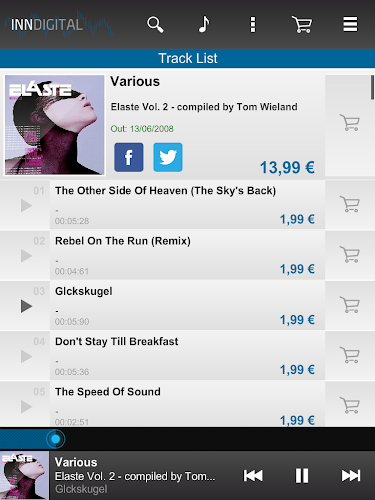 Inndigital Music Store. Vytvořeno pro DJs! Přístup k digitální hudbě z Inndigital na vašem zařízení smartphone/tablet s touto aplikací. Procházejte, poslouchejte a přidejte hudbu do svého košíku odkudkoli, usnadňují nákupy z...
