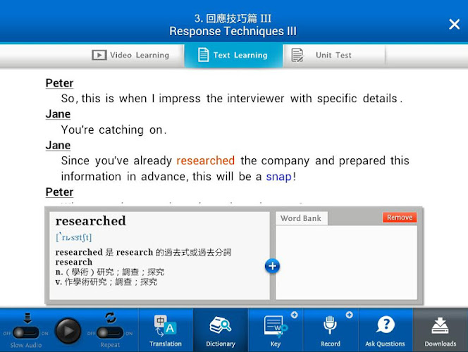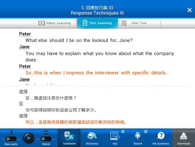 Po stažení této aplikace můžete kliknout a přihlásit se k dohodnutému heslo účtu a použít exkluzivní kurzy. Všechny kurzy provozují stejně jako u vašeho osobního počítače, ale nemůžete si stáhnout soubory související s kurzem. Pokud potřebujete stáhnout text kurzu a zvukové soubory, vraťte se prosím do svého osobního počítače.