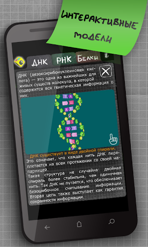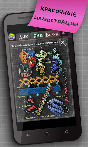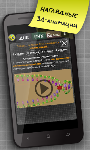 Приложение «айМолекула» откроет для Вас удивительный мир клеточной биологии. Вы узнаете о структуре и функциях ДНК и РНК молекул, синтезе белка, а также познакомитесь с понятиями комплементарность, репликация, мутация и транскрипция.ОСОБЕННОСТИ:
