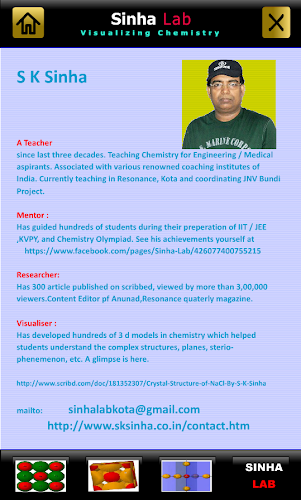 Komplexní zacházení s komplexním 3D uspořádáním IOND v NACL Lattice. Tato APK zahrnuje několik dobře komentátových modelů mřížky chloridu sodíku pomocí několika filmůAutor tohoto softwaru je odborník na chemii i v molekulárním modelování. Tento software byl vyvinut pro vysokoškoláky, kteří se připravují na konkurenční zkoušky jako IIT, AIEEE nebo AIPMT vstup.
