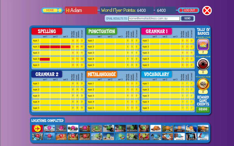 • Student results can be emailed to their teacher, parent or tutor.
