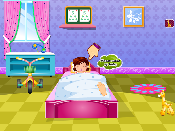 Ahoj, dnes musíme jít do jiného města na konferenci, a proto se nemůžeme postarat o naši dceru Doris. Myslíte si, že byste nám mohli pomoci? Jste pilné a zodpovědné dítě? Pokud máte rádi dívčí hry, pak je tato hra pro vás ideální. Máte příležitost nám pomoci s péčí o rozkošnou holčičku. Ráno se probudí a potřebuje, abyste měli velmi dobrý začátek. Musíte se s ní velmi dobře chovat, protože je velmi citlivá. Nyní můžete prokázat, že jste dobrý přítel, ale také odpovědné dítě, které se může postarat v budoucnu jeho sestry nebo jeho bratra.Postupujte podle všech pokynů a vše bude v pořádku. Dívka bude velmi šťastná a my budeme velmi šťastní rodiče. úspěch.