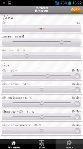 výsledky se zobrazí v nabídce statistik. - režim xentimer pro akce časovače.