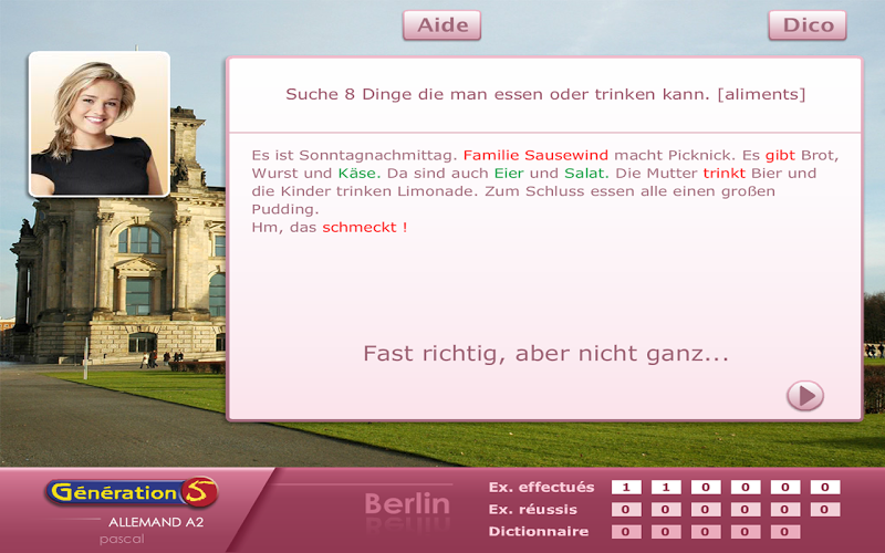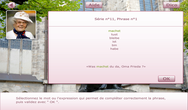 Tato aplikace, která je zaměřena na studenty středních škol (6./5. v lv1; 4./3. v lv2) nabízí aktivity pro porozumění psanému německému jazyku. lze jej použít ve třídě, ale také doma, kde bude cenným nástrojem pro učení a opakování základních pojmů.nabízí „výlet“ do různých měst v Německu: Frankfurt, Berlín, Hamburk, Lipsko, Mnichov a Norimberk. každá etapa odpovídá typu činnosti a bude příležitostí k řešení mnoha kulturních témat: každodenního života a životního prostředí, kulturního a historického dědictví, zeměpisných památek a reálií, literárního a uměleckého dědictví.