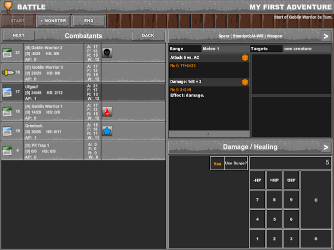 „Rozhraní je velmi intuitivní k použití a není čas na nastavení dobrodružství, nahrání příšer pro něj a poté organizuje setkání. Jakmile jsou postavy nahrány a příšery jsou umístěny do setkání, můžete se setkat, sledování iniciativy, a bojové podmínky, a to pro obě postavy, tak i monstrum. V aplikaci pro útok a poškození lze převést na cíle, což umožňuje kompletní sledování boje DM z obou stran obrazovky DM. “ -www.enworld.org4e Dungeon Masters Jste nemocní a unavení z toho, že se pohybujete kolem Excelu, škrábance nebo nějaký jiný těžkopádný systém, který sleduje všechny tyto bojové statistiky D a D4E? Sledujte iniciativu všech vašich hráčů a monster, body zasažení, poškození, podmínky a pravomoci pomocí jedné aplikace. Roll Dice for Monsters Powers, takže nemusíte lovit správné kostky! DM Minion zrychlí vaše boje D a D 4E!