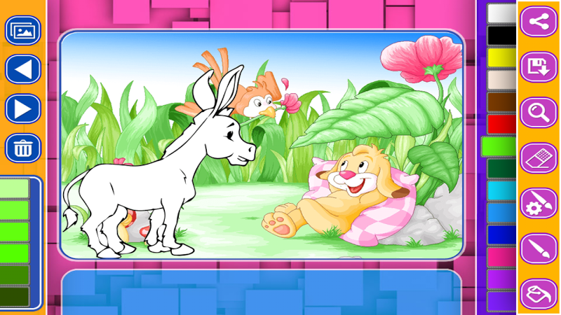 Vydejte se na nejnovější dobrodružství s roztomilými zvířaty. Budete se spřátelit se spoustou roztomilých zvířat a budete se tolik bavit. Všechny roztomilé zvířecí obrázky. Můžete oživit váš vysněný scénář s pozadím používaným na obrázku. Když malování obrázků na pozadí, pomůže vám to při výběru barev. Pokud se vám váš obrázek nelíbí, můžete provést opravy na obrázku, který se vrátí zpět nejnovější transakce z palety nástroje na pravé straně. Zatímco malování můžete rychle malovat, která chcete na obrázku, s nástrojem pro kbelík barvy v paletě nástroje, který vybere barvu, kterou si přejete. so you can get better results on the picture.after painting the pictures in the game, you can share pictures you have painted with your loved ones by clicking the facebook icon and you can also share them at your account such as gmail, google, whatsapp, hotmail, chaton on the share button on the top menu.