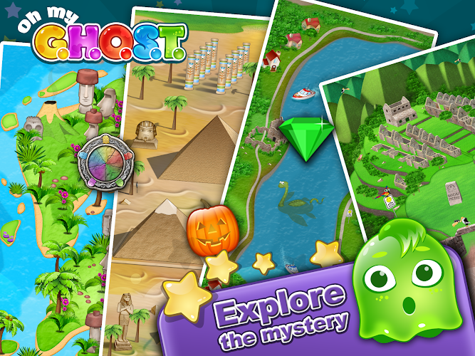 Ach můj g.h.o.s.t. je úžasná vyříkaná puzzle hra: duchová sága zahrnující exkurze v místech tajemství. G.H.O.S.T. je typ hry Match3, musíte pouze připojit alespoň dva duchy v řádku, abyste vyčistili příslušné dlaždice. Pokuste se dokončit cíl každé úrovně pomocí minimálního množství pohybů. Objekty, jako jsou bloky, prasklé cihly, gumový džem nebo řetězy, zvyšují vaše úkoly tvrdší, jak se příběh odehrává. Čím více hvězd vyhrajete, tím vyšší je vaše skóre! Budou cestovat po vaší straně v dobrodružství v zapomenutých říších zpět v čase a nejrůznějších ročních obdobích a místech, kde mýty a legendy prosperovaly v celé historii. Omlouvám se, je to jediné slovo, které se může vyskočit z jejích úst na její obranu. Heather má vášeň pro virtuální pronásledování a odrazí se kolem lhostejně jako včela na jaře. Není to však jarní horečka; Tony by mohl být skvělým studentem, přesto je zamrzlý při setkání s čímkoli nadpřirozeným. Sid vypadá jako Looney: raději by byl pirát v bitvě Galaxy, než by se otočil do táborových pravidel. Bohužel nemůže uniknout jeho osudu! Olivia je temperamentní a společenská. Má zamilovanost do Tonyho a obvykle k němu skočí, aby vytvořil tým. Je to tajemství, takže se nekonejte! Tony může pro ni také spadnout!odpovídající duchy jako tečky stejné barvy v různých tvarech vám poskytnou super duchy, Blaster Busters!