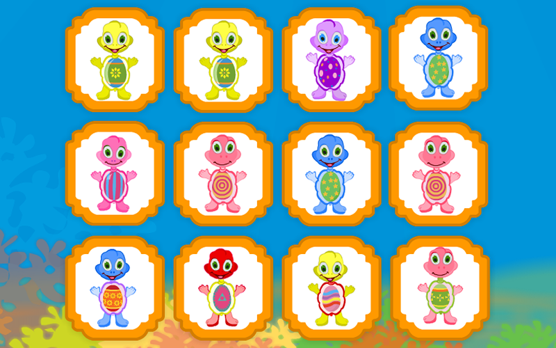 Přátelé zde jsou vaše šance hrát s úžasnými želvami. Želvy chodí jako rodina na dovolenou, děti se ztratily a musí se vrátit ke svým rodičům, než bude velmi pozdě. Aplikace se týká přizpůsobení dětí se svými rodiči předtím, než dojde a předtím, než bude velmi pozdě. V této aplikaci musíte hrát mnoho úrovní, každá úroveň jako svůj vlastní časový limit. Dvojice se objeví na horním panelu s pomocí želv, jak je znázorněno. Pro děti je to velmi snadná aplikace.Stáhněte si tuto bezplatnou aplikaci pro vaše děti; Nechte je, aby si užili hraní doma ve vašem inteligentním zařízení. Máte mnoho úrovní, abyste mohli hrát tuto skvělou aplikaci. mít přehrávání bash!
