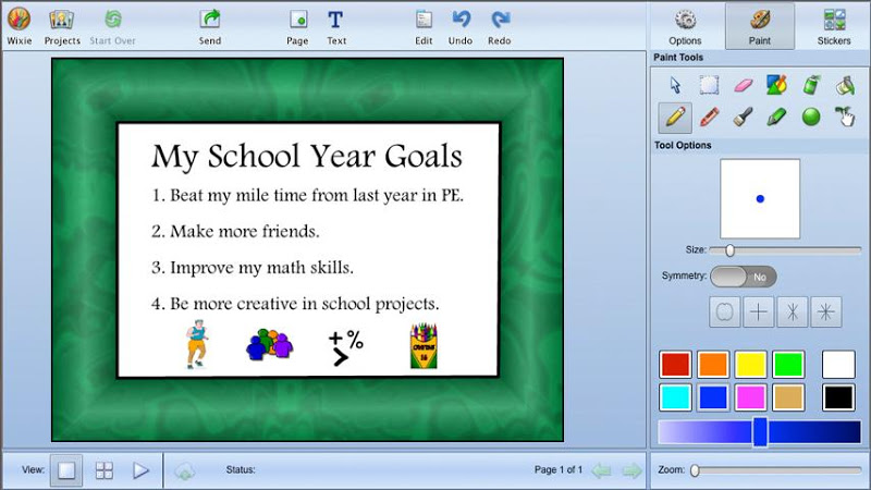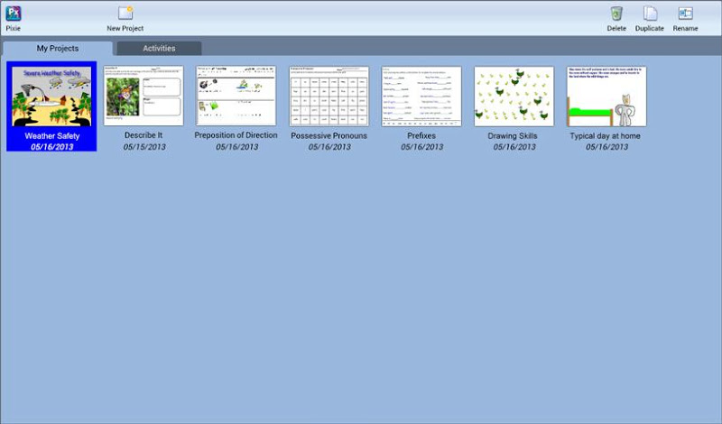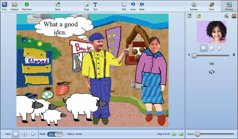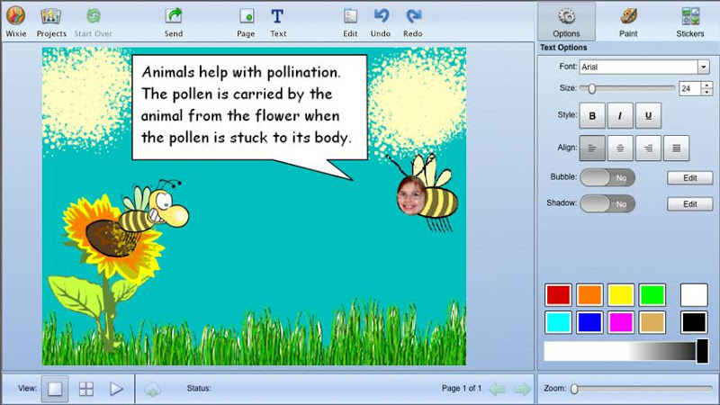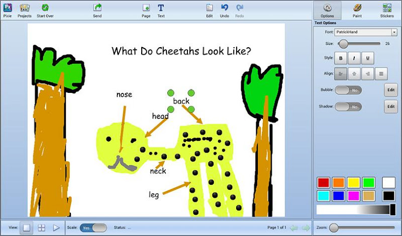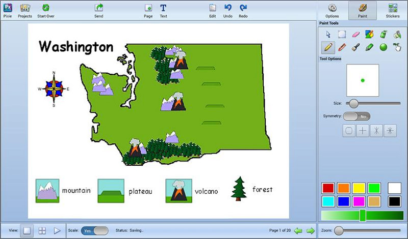 Pixie je oceněný autorský nástroj, který mohou studenti používat ke sdílení nápadů, představivosti a porozumění prostřednictvím kombinace textu, originálního uměleckého díla, vyprávění hlasu a obrázků. Studenti mohou používat Pixieho barvy, textové možnosti, klipart a hlasové nahrávání k vývoji příběhů, učebních projektů, videí a ještě mnohem více.- Pixie je skvělý nástroj pro sebevyjádření