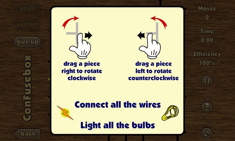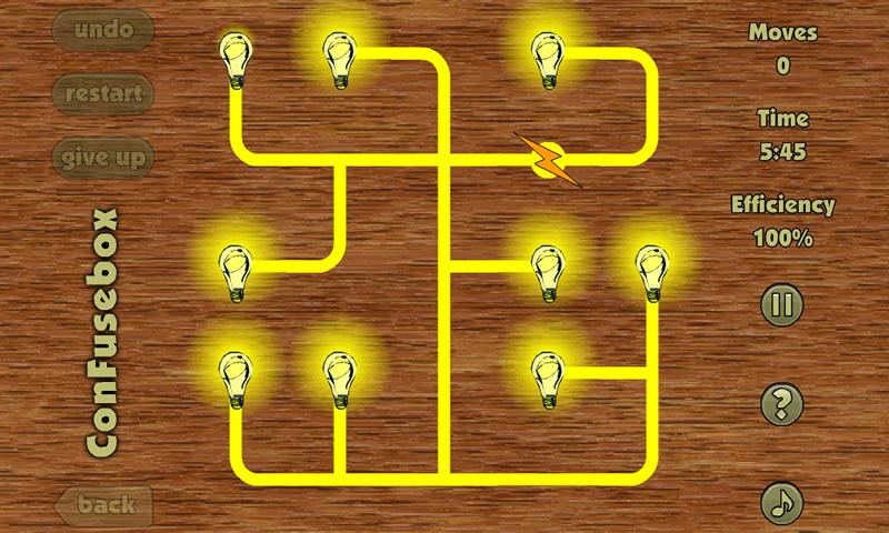 Web a sociální sítě verze této hry se hraje milióny časů, a nyní to nejlepší vůbec verze tohoto nevyzpytatelný obvod budování puzzle hra je k dispozici pro vzít s sebou kamkoli!Pravidla jsou velmi jednoduchá, "připojte všechny kabely, a rozsvítit světla." A dráty jsou na správném místě. Prostě je třeba otočit trochu tak, že vše, co je pod napětím. Bohužel to není tak jednoduché, jak to zní. Každá hádanka má řešení, ale některé nejsou zcela zřejmé. Funkce "zpět", "restart" a "vzdát" které vám pomohou řešit hádanky.
