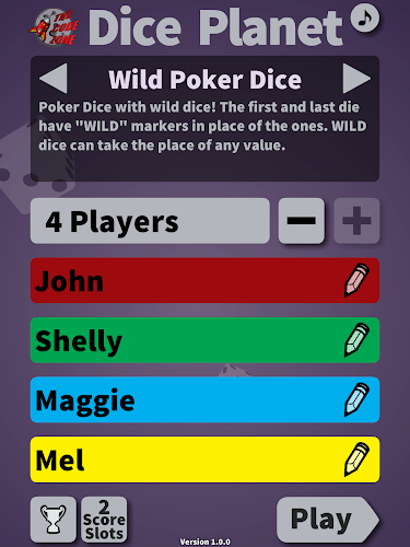 Kostky Planet je nejnovější a největší verze Dice-A-Rama série. Dvanáct velké kostky hry s až čtyřmi hráči v "obchvatu" režimu pro více hráčů. Zahrnuty jsou oblíbené jako Yatzy a Maxi-kostky, stejně jako některé, které jsou zaručeně něco, co jste ještě nikdy neviděli.Co Je Nového