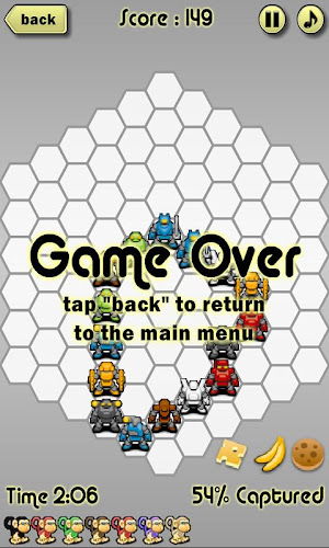 Blokáda Monkey je velmi rychlá hrací strategie logické hry. Opice unikly ve vaší laboratoři a musíte jim zabránit úniku. Máte flotilu robotů, které jim budou stát v cestě, ale zdá se, že opice vždy najdou nejrychlejší cestu. Musíte naplánovat dopředu, abyste udrželi své opice od okraje. A někdy je ten, kdo je otočný, rozdíl mezi zachycováním a únikem.Blokáda Monkey je nejnovější hra z kódové zóny, výrobce buldozeru Hit Games, Pop Pies, Meltdown a Dice-A-Rama. Bavte se a získejte ty opice!