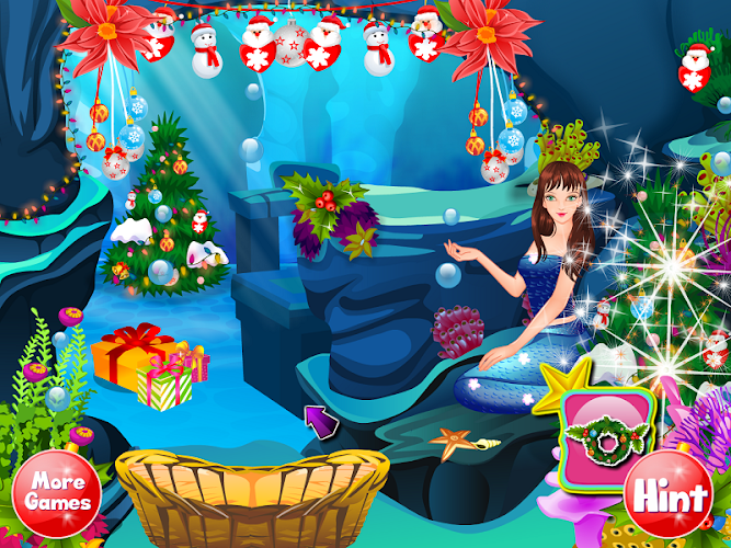 ahoj, Vánoce se slaví po celém světě každý podle svých tradic. mořské panny slaví pod vodou s rybami, delfíny, chobotnicemi, kraby, lepicí páskou, šneky, sépiemi, hvězdicemi, chobotnicemi a dalšími tvory. nepálily pod vodou, tak jsme si řekli, že uděláme překvapení pro mladou mořskou pannu. pomůžeš nám? pokud ano, pak byste měli vědět, že prostřednictvím této vánoční hry poznáte naši kamarádku mořskou pannu, která svůj pokoj na tuto velkou oslavu nepřipravila a vy to budete muset udělat za ni.1) nejprve musíte udělat úklid, odstranit prach, posbírat odpadky, vrátit všechny věci na místo a pak můžete začít zdobit. přineste stromeček s ozdobami a pak můžete začít zdobit. položte dárkové krabičky na zem, položte barevná světla a ozdobte jimi stěny, pak musíte ozdobit vánoční stromeček.