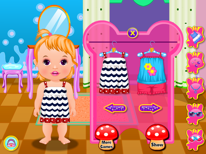 Elliot se cítí velmi znuděně, protože celý den stála a sledovala televizi a nevěděla, co dělat. Před uzavřením televize se však objeví reklama a řekl, že byl otevřen nový komplex s bazénem ve svém městě a velmi se o to zajímají, že chce jít do bazénu, aby přeskočil přes nudu. Je to docela malé a nemůže chodit sám u bazénu nebo se o sebe postarat, takže vás požádáme, abyste se postarali o Little Elliot. Jakmile je bazén musí uspořádat některé hračky, které si Elliot mohl užít čas u bazénu. Musíme pomoci dostat se do bazénu a hrát míč nebo plavat s bóje nebo matrací. Zdá se, že Elliot by chtěl něco sníst, abychom s ní mohli jít do restaurace letoviska, aby jí sloužili s něčím dobrým k jídlu, jako je toast kuře a kousek pizzy, který toto jídlo miluje. Pak jděte do jejího šatníku a musíte pomoci oblékat se, co děláme, je pomoci při výběru šatů, doplňků, brýlí a nakonec si musíme pomoci při výběru krásných bot. Vyzkoušejte další hry pro dívky v této kategorii, abyste vyzkoušeli vaši schopnost pracovat s dětmi.Pokyny: použijte prsty