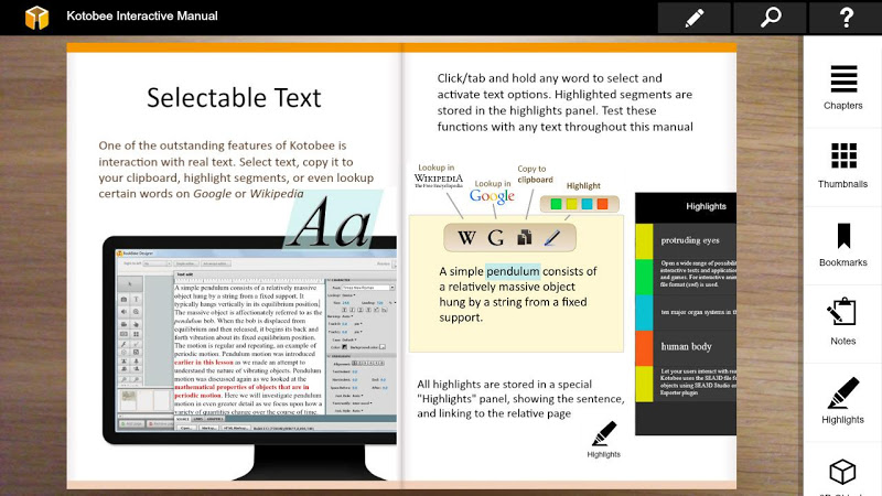 Analýza A Revize Aplikací Pro Android: Kotobee Interactive Manual, Vyvinuté Společností Vijua. Uvedeno V Kategorii Vzdělávání. Aktuální Verze Je 1003, Aktualizována Na 22/12/2014 . Podle Recenzí Uživatelů Na Google Play: Kotobee Interactive Manual. Dosaženo Více Než 1,000 Instalací. Kotobee Interactive Manual Má V Současné Době Recenze 36, Průměrné Hodnocení 4.3 Hvězd