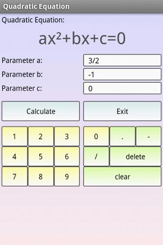 Quastatic Rovnice Solver: Jste schopni vyřešit kvadratické rovnice. Program je schopen najít skutečné i složité kořeny. Stačí zadat parametry rovnice.