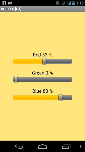 Aplikace Tato možnost ovládá zobrazení 3 barevné anody LED k řízení LED displeje je barva se signálem PWM z desky IOIO-Q pomocí posuvníku Seek Paru 3 pro upravení jasu.barvy LED Light Mix jsou krásné.