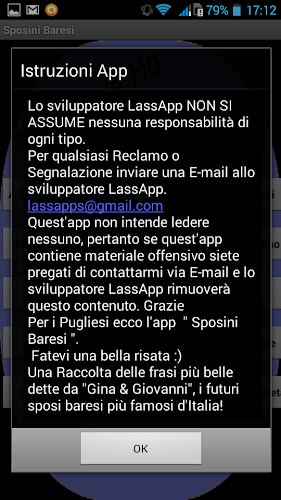Quest'app non intende ledere nessuno, pertanto se quest'app contiene materiale offensivo siete pregati di contattarmi via E-mail e lo sviluppatore LassApp rimuoverà questo contenuto. Grazie