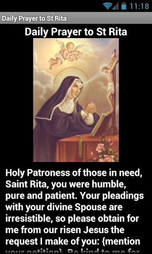 Tato aplikace vám poskytuje informace o životě Saint Rita z Cascia, patrona nemožných příčin.st. Rita se narodila v Itálii Roccaporena v roce 1381. Zemřela 22. května 1457. Rita byla kanonizována 24. května 1900 papežem Leo XIII. 9denní Novena to Saint Rita.