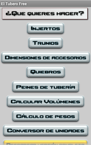 Aplikace postavená výhradně ve španělštině a navržena tak, aby pomohla Tubero v jejich každodenní práci.umožňuje uživatelům vypočítat vývoj štěpů a obruby, znát pokrok příslušenství, vypočítat řezy, Combs potrubí, znát velikost a počet šroubů přenášených každou přírubou, vypočítat hmotnosti a objemy atd.