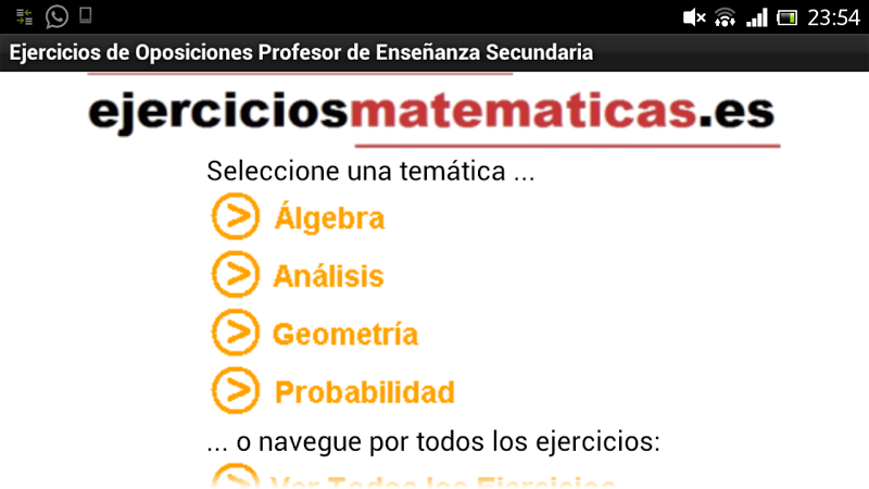 Aplikace (v demo verzi) k přípravě praktického výkonu opozice vůči tělu učitelů středních škol, specializujících se na matematiku, pro všechny regiony Španělska. Toto je demo verze, je plná verze k dispozici také na Google. LA strana hraje všechny soupeře uznané jako komplikovanější a kde se provádí větší výběr, je to praktické cvičení, kde soupeř musí vyřešit několik technických problémů matesáticas.la pro tuto část opozice je jasné: