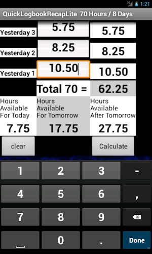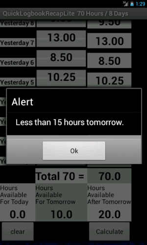 - K dispozici je také textové pole pro zadání odhadovaných odpracovaných hodin pro dnešek a další textové pole odhadnout, jak mnoho hodin, které by mohly fungovat zítra, které vám pomohou naplánovat svůj příští kamionu náklad. To jen pomůže mít dobrý nápad, než budete mluvit do svého dispečera.