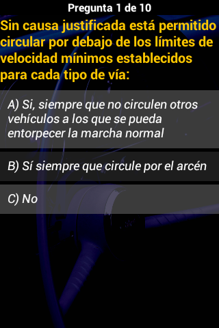 Con esta app podrás practicar los exámenes teóricos utilizados para obtener el carné de conducir en España.Utiliza preguntas que suelen salir de manera habitual en este tipo de examen, y te permiter ir afianzando tus conocimientos para poder enfrentarte a la obtención del permiso de conducir.