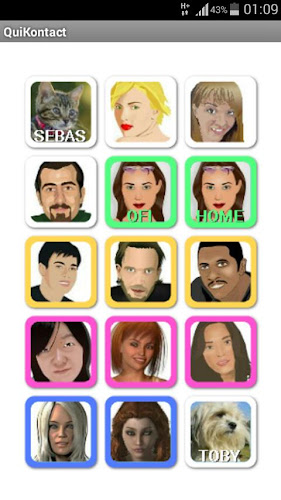 Dlouhý stisknutím každého tlačítka prosadíte často používaný kontakt. Vyberte barvu pro rámeček a stisknutím tlačítka Uložit uložte změny. Získáte velmi rychlý způsob, jak zavolat své oblíbené kontakty pouhým kliknutím.zdarma, žádné reklamy, čisté a snadno použitelné.