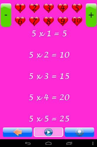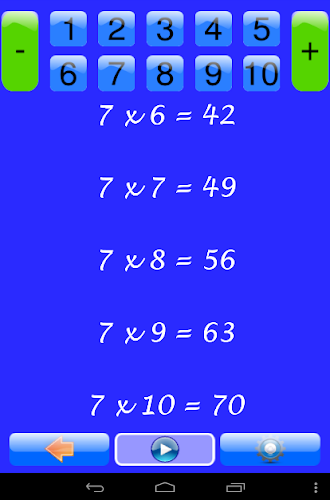 Toto je matematická hra pro studium a učení multiplikačních tabulek. Je to užitečné pro děti základní školy a pro všechny, kteří se chtějí učit. Je to hra, kde můžete studovat čtení a poslouchat, že budete studovat tabulky...