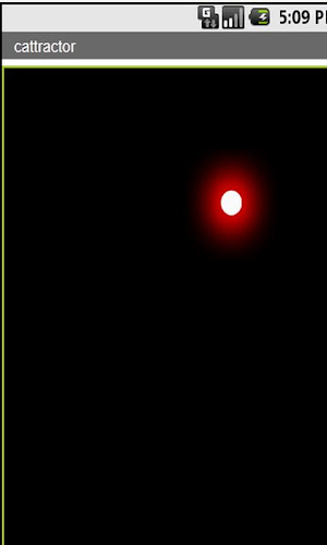 Červená skvrna, běží kolem obrazovky a získává pozornost vašich mazlíčků, která se ji snaží chytit. Telefonní displej, doporučujeme se!