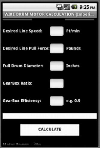 Můžete vypočítat kapacitu drátů na bubny a výpočty motoru/točivého momentu.