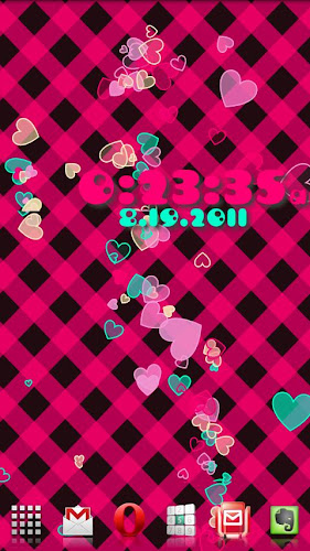 Průtok srdce! Je tak roztomilý srdce teče živě tapety! Velmi přizpůsobitelné a přinese frajera, barevný roztomilý pozadí. Některé z možností jsou různé barvy, tvary, směry proudění, zpráv, hodiny a písmo, srdce válcování a otok, atd. Poklepáním na obrazovku způsobí výbuch tečky nebo jiné holčičí tvary jste si vybrali. Pohrajte si s různými nastaveními, a najít to, co se vám nejvíce líbí!*heart flow! live wallpaper