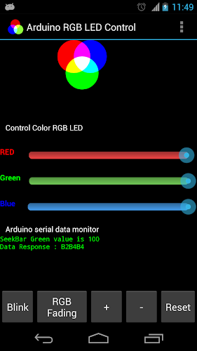 Tato aplikace je třeba se připojit k desce Arduino a poté ovládat LED RGBPoužijte k ovládání port Android USB. Poté potřebujete kabel a zařízení Android USB-OTG s podporovaným USB-OTG. - Fading Function a může upravit načasování na vyblednutí.