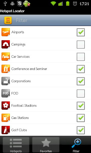 - filter: narrow down the Výsledky vašeho hledání podle typu umístění, jako jsou silniční restaurace, hotely, konferenční a seminární centra, vlakové stanice, benzínové stanice, letiště, fotbalové stadiony atd.