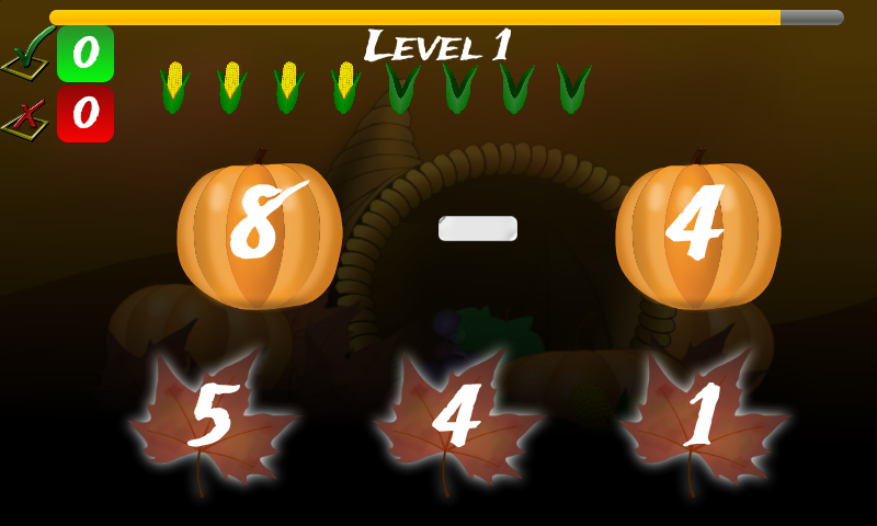 Matematická závislá zábavná hra, která se učí se základními operacemi a obrázky dne díkůvzdání.Naučte se matematiku s Boriol!