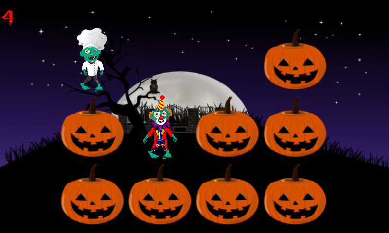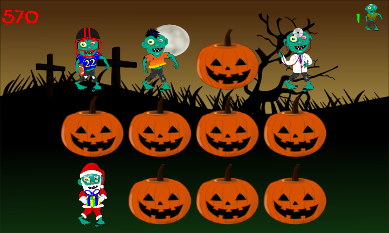 - najděte mě; Podívejte se na zombie, které se skrývají v některých dýních a musíte si pamatovat, které z nich.