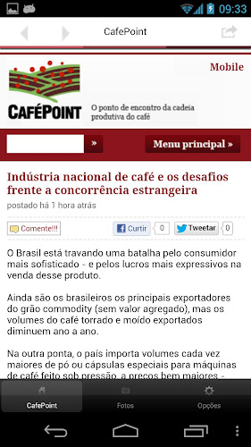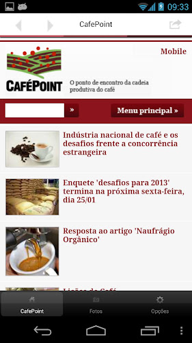 s cafépoint sledujete nejnovější zprávy o kávovém sektoru! cafépoint je referenční stránka kávového průmyslu v Brazílii a denně přináší technické a tržní informace, aby přispěla k vývoji celého kávového řetězce.– velmi snadno použitelná aplikace a ideální pro ty, kteří chtějí mít přístup k hlavním zprávám a technickým článkům mlékárenského podnikání kdekoli a kdykoli.