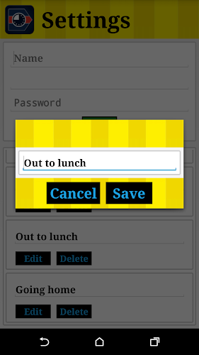 Každé tlačítko je navrženo tak, aby odesláno konkrétní zprávu na konkrétní místo a aktualizovala váš stav na základě stiskného tlačítka. Žádná z tlačítek nebude fungovat, pokud nebudete mít heslo společnosti, které by vám poskytlo help Desk.