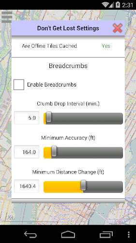 Nenechte se ztratit zdarma (DGL Free) používají GPS zařízení vašeho zařízení Android k zobrazení vaší aktuální polohy a směřování na mapě. Zobrazuje vzdálenost a ložisko na označené místo. Může zaznamenat strouhanku na zaznamenávání vaší historie cestování. Nejvíce se soustředí na umístění orientační body nebo adresy na mapě a poté na toto místo poskytne směry obratu. Připojení.DGL má funkce pro uložení napájení baterie: Mapy mohou být uloženy na zařízení-můžete vypnout mobilní a Wi-Fi připojení. Vlačková místa jsou uchovávána po uzavření aplikace nebo je zařízení vypnuto. Máte možnost udržet displej nebo nechat zařízení zadat režim spánku.
