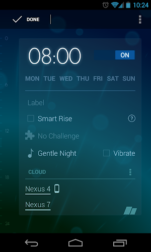 Vaše vaše Chuť, váš styl: Vyberte si z našich nádherných barevných témat, aby odpovídaly vašemu vlastnímu stylu. Nebo použijte náš design-tool k vytvoření zcela nového vzhledu. Vyberte jednu z našich ručně vytvořených návrhářských hodin, aby vyhovovaly vašemu vkusu. Myslíte si, že stisknutí tlačítek není dost fantazie? Otočte telefon a odložte jej. Navíc včas rozpozná, když zvednete telefon a snižuje intenzitu alarmu snížením svazku. Synchronizace cloudu umožňuje bezproblémový zážitek napříč telefony a tablety. Jako plus se vše zálohuje. a nastavení odpočítávání je stejně snadné jako likvidace kuchyňského časovače. Integrace, opakující se alarmy, úžasné animace, adaptivní snoozing, Fade-in, Dashclock Extension, Tlačítka hlasitosti pro odložení