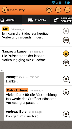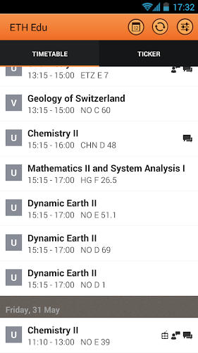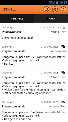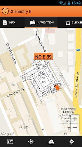* učení. Zobrazuje osobní jízdní řády všech kurzů z MyStudies.ethz.ch a poskytuje mapy ETH pro orientaci. Umožňuje studentům odpovídat na otázky kliknutí a zobrazit výsledky. Dále mohou lektoři a mluvčí semestru nastavit kanály pro otázky studentů a zpětnou vazbu.