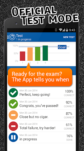 4. Grafy pokroku: Podívejte se, jak dobře se vám daří, a sledujte všechny své falešné výsledky testů. Budete vědět, kdy budete připraveni na skutečnou zkoušku