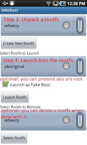 Gnuroot poskytuje metodu pro instalaci a používání distribucí GNU/Linux a jejich související aplikace/balíčky spolu s Androidem.To nevyžaduje root.